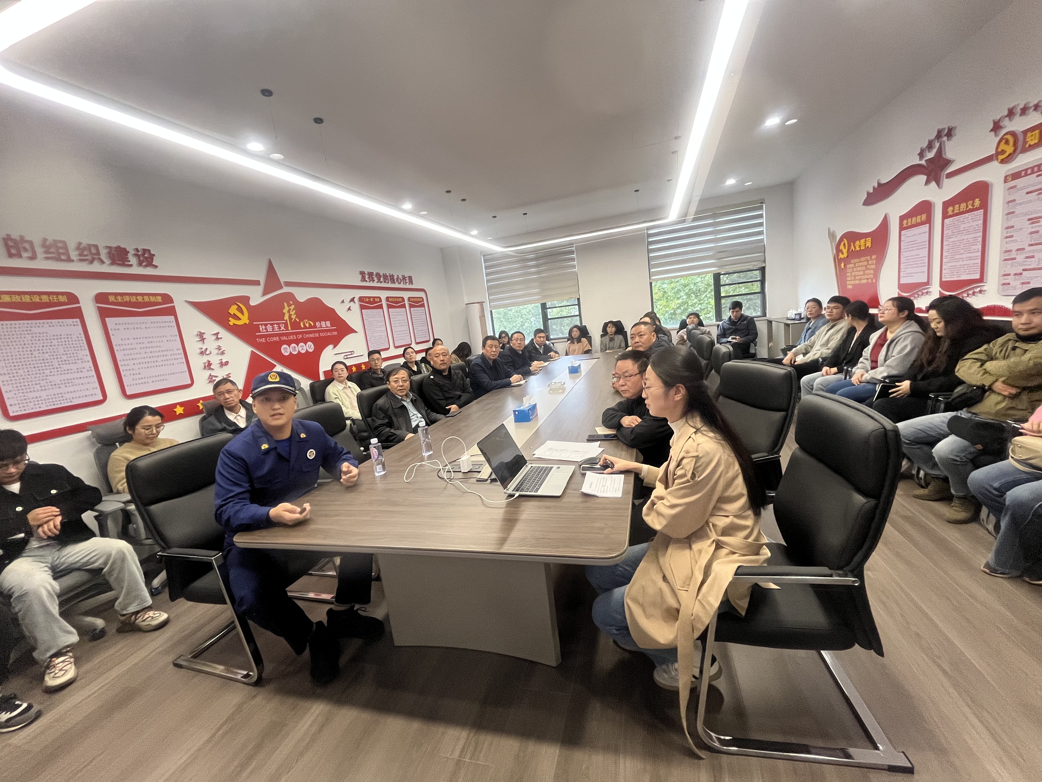演练前,马队长以南京本地近年典型火灾事故为切入点,通过 PPT 演示、实物讲解等方式,向参与人员普及了火灾成因、初期火灾扑救方法、疏散逃生技巧等知识,重点演示了干粉灭火器、消防栓的正确使用步骤,着重强调“隐患险于明火,防范胜于救灾”的安全理念,帮助全员夯实消防安全理论基础,为演练顺利开展奠定了坚实基础。