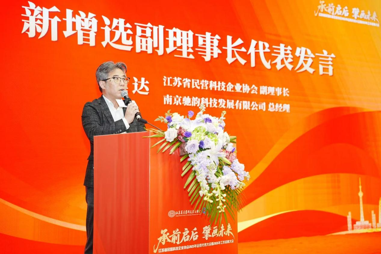 随后的民主决策环节,多项议案高票通过,新当选的副理事长、南京驰韵科技发展有限公司总经理濮达作为代表发言,他肯定了协会在资源对接方面的重要作用,并结合企业成长经历呼吁:“期待协会持续搭建更多优质资源平台,促进技术资源与应用场景的精准匹配,助力中小企业降本增效、加速成长。”